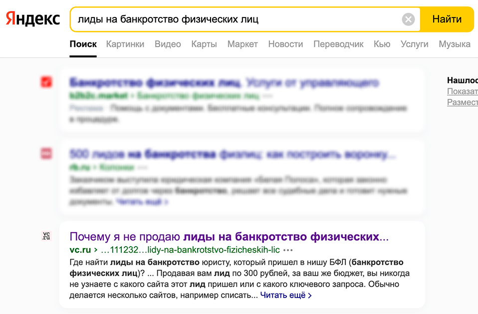 Цена клика в «Яндекс.Директе» по запросу «банкротство физлиц в москве» достигала 1090 рублей, поэтому «Центр банкротства в Москве» обратился ко мне, чтобы получать дешевых, но качественных лидов из ВКонтакте и «Одноклассников».